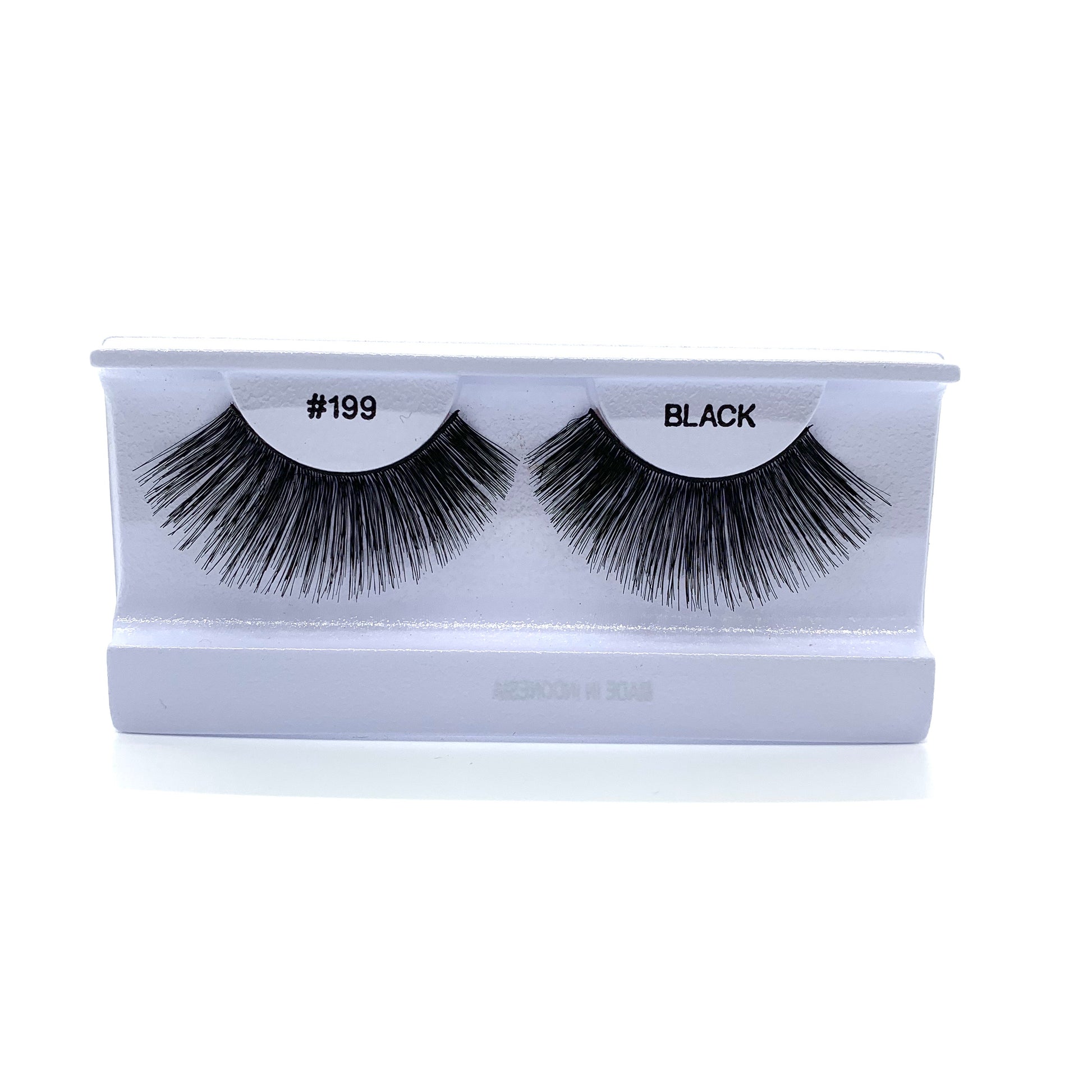 - Press down across the length of the strip to secure the lashes.
