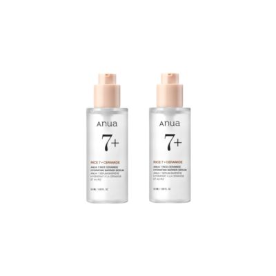 Anua 7 Rice Ceramide Hydrating Barrier Serum has a unique elastic consistency infused with Ricera+, 3% Niacinamide, Arbutin, Zinc and Ceramides to brighten and moisturize the skin.
